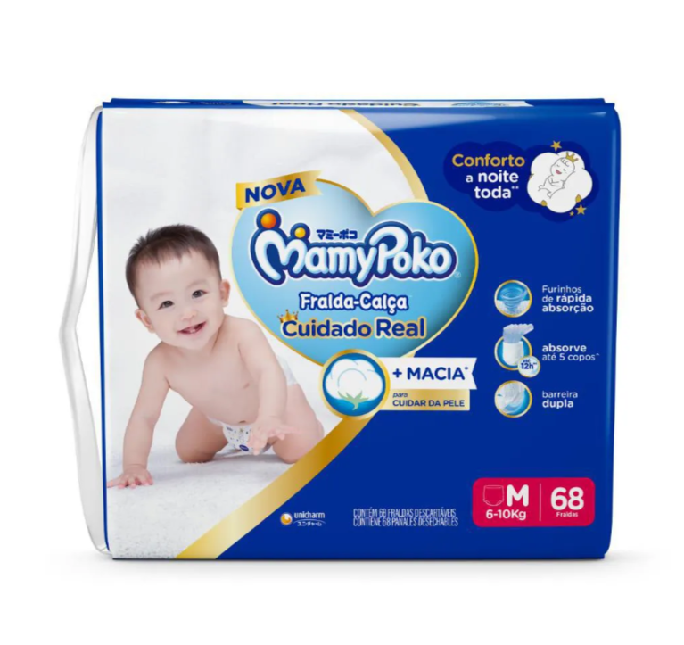 • MamyPoko Fralda-Calça Premium Seca deixa o seu bebê sequinho e protegido a noite toda