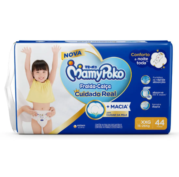 • MamyPoko Fralda-Calça Premium Seca deixa o seu bebê sequinho e protegido a noite toda
