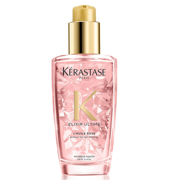 O Óleo L’Huile Rose Elixir Ultime Kérastase foi desenvolvido especificamente para iluminar os cabelos coloridos com nutrição profunda da fibra e controle duradouro do frizz.