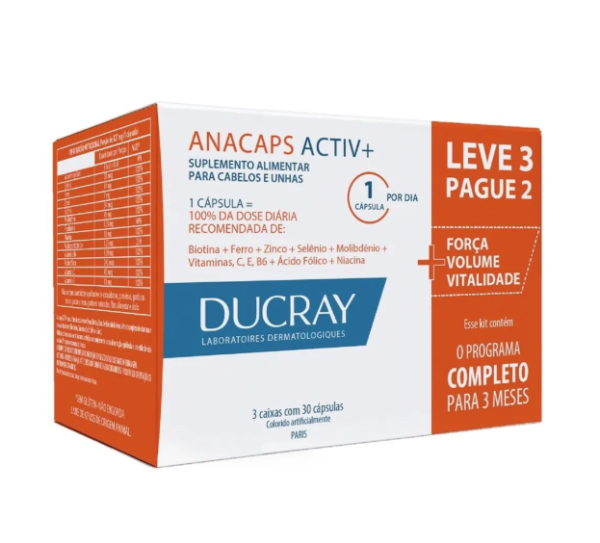 Suplemento Alimentar Ducray Anacaps Activ+ 90 Cápsulas